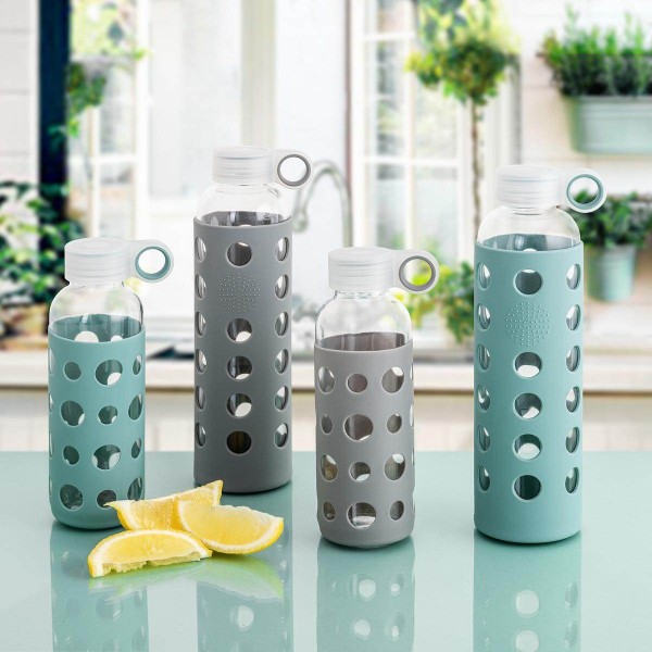 BOTELLA VIDRIO C/SILICONA TURQUESA 0,4L QUIDATE ADI