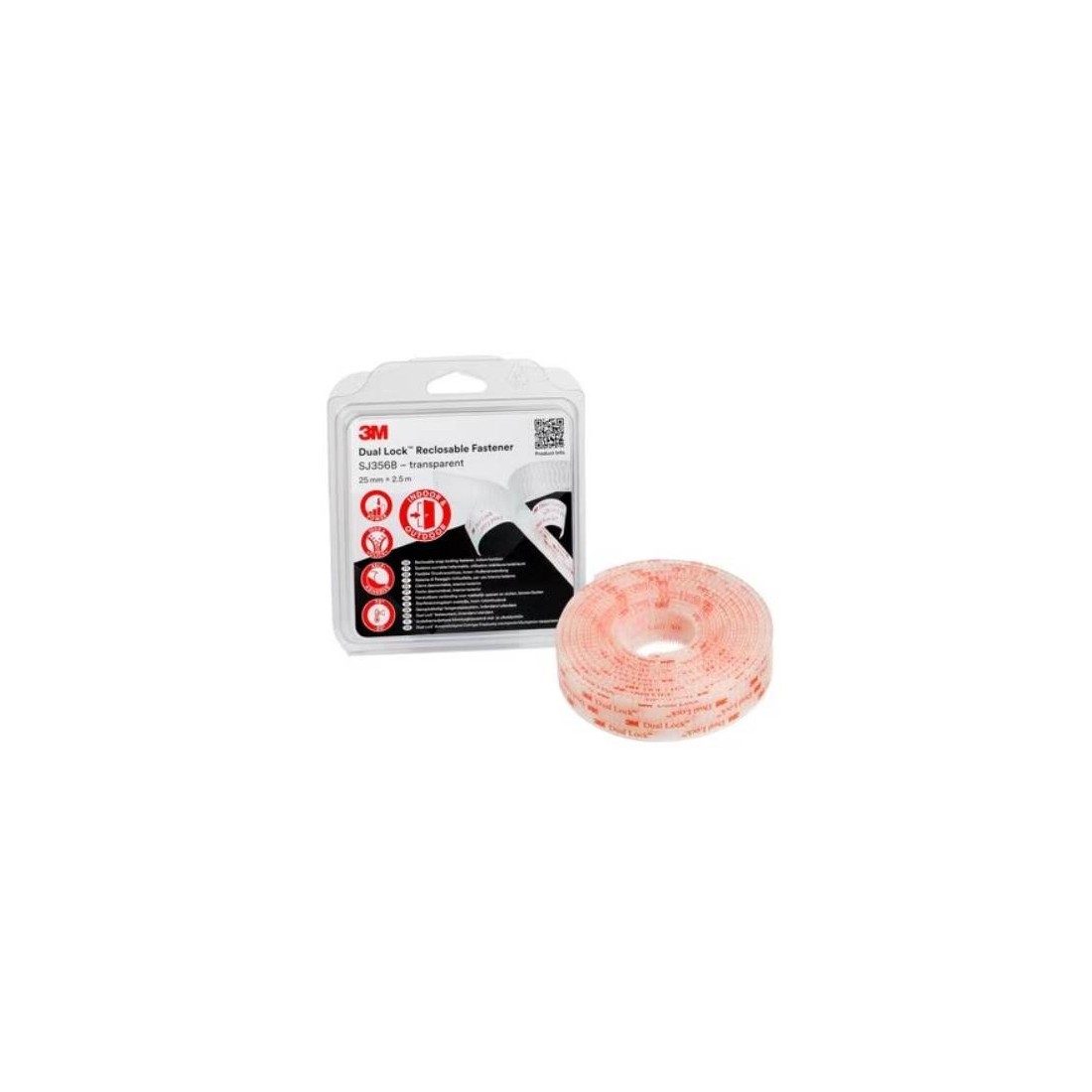 CINTA VELCRO DUAL LOCK SJ3560D TRANSPARENTE 25mmX2,5m 5,7mm 3M