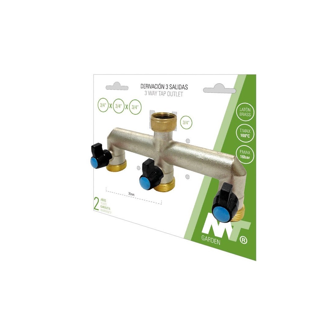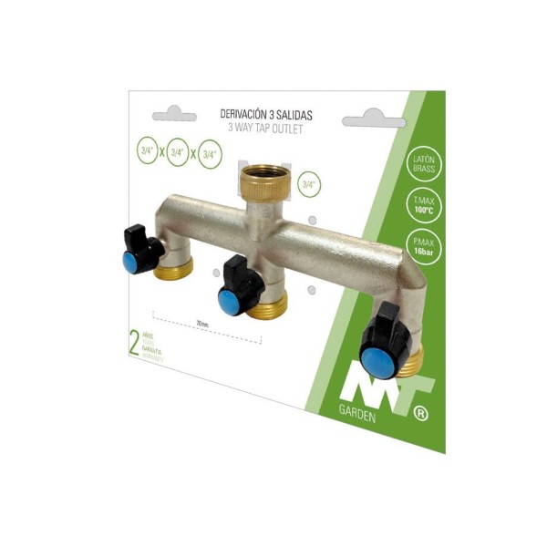 DERIVACION 3 SALIDAS PARA GRIFO JARDIN Ø 3/4" LATON