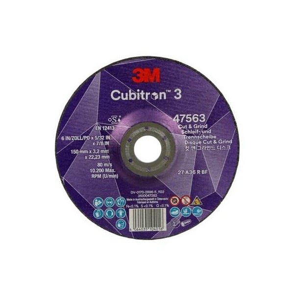 DISCO CORTE Y DESBASTE 3M CUBITRON III 150 mm x 3,2 mm x 22,23 mm G36 47563C3