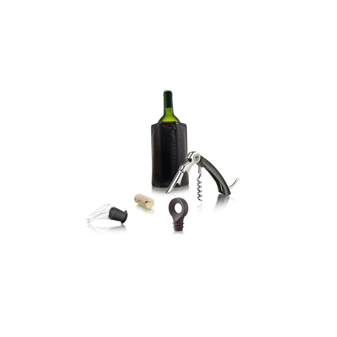 SACACORCHOS DOS TIEMPOS. TAPON Y ESCANCIADOR + ENFRIADOR SET DE VINO PRINCIPIANTE ICC BRANDS