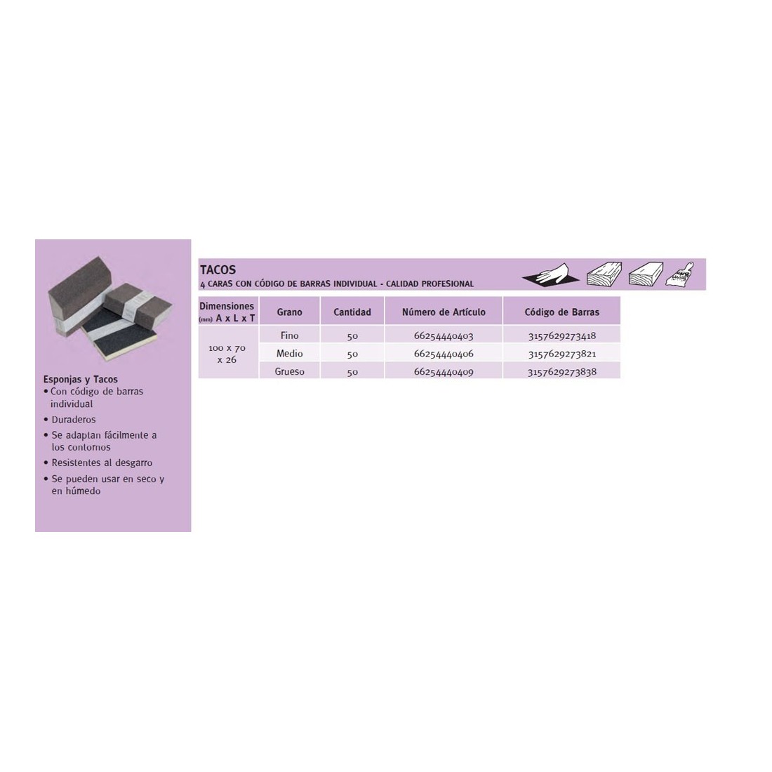 TACO LIJADOR FLEXOVIT ESPONJA 100X66X26MM GRANO MEDIO P-60